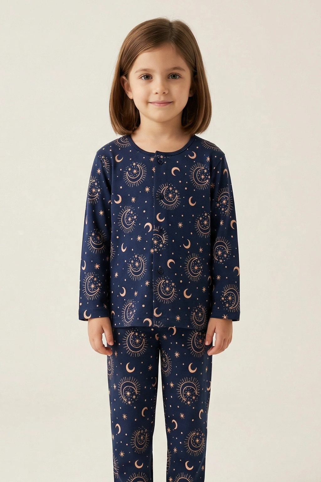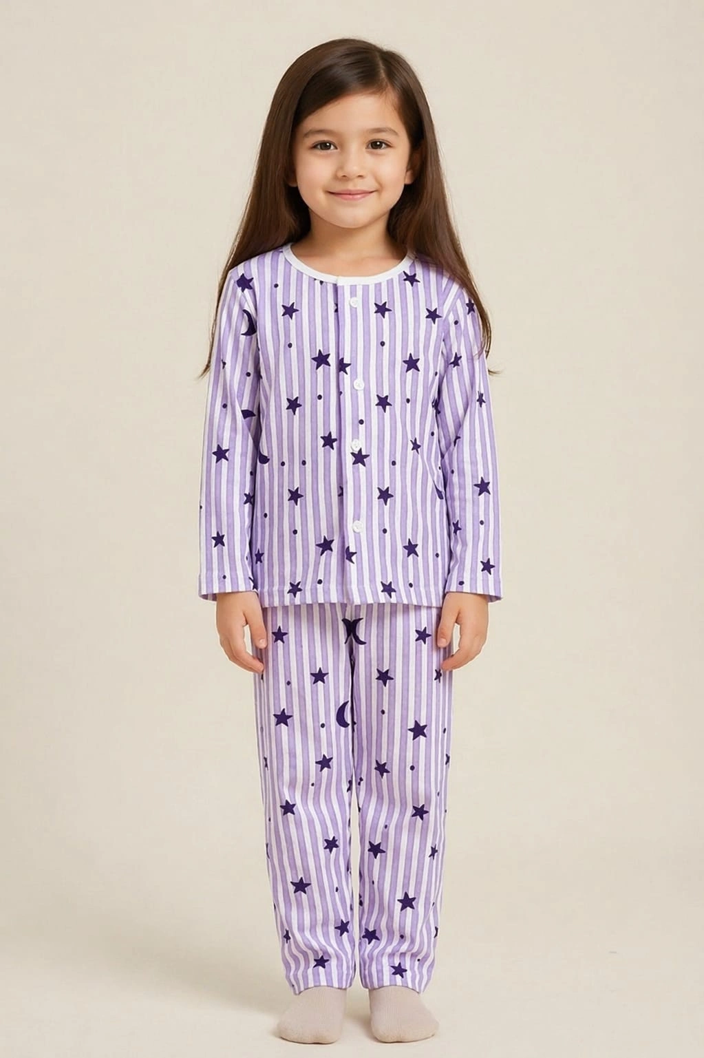 Kids Night Suit – Lilac Star & Stripes PJ Set